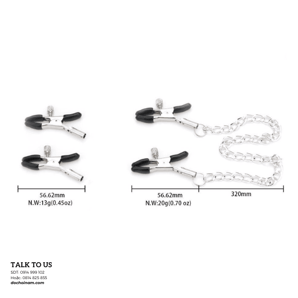 Thổi bùng khoái cảm và sự quyến rũ với kẹp vú inox có dây xích, một món đồ chơi tình dục mang đậm phong cách BDSM, giúp bạn và người ấy trải nghiệm cảm giác rạo rực đầy mới lạ.