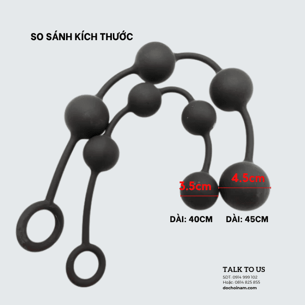 Sở hữu chiều dài 40cm cùng từng hạt tròn to 3.5cm, sản phẩm mang lại trải nghiệm BDSM chân thật và đầy kích thích. Chất liệu cao su dẻo mềm mại, an toàn cho cơ thể, dễ dàng uốn cong và điều chỉnh theo từng chuyển động. Vòng tay tiện lợi giúp bạn kiểm soát nhịp độ, tăng dần cường độ để cảm nhận từng đợt sóng khoái cảm dâng trào. Khi kết hợp với gel bôi trơn, chuỗi hạt lướt mượt mà, kích thích sâu tuyến tiền liệt, khiến mỗi lần đưa – rút là một lần đê mê.