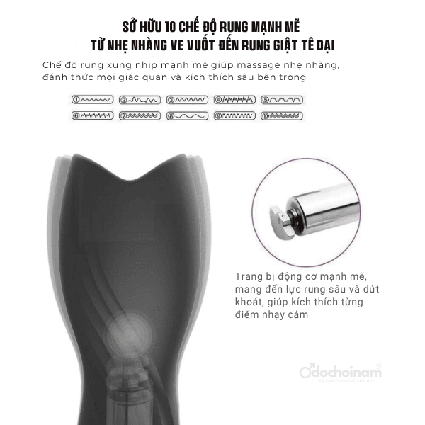 Sản phẩm được thiết kế đặc biệt dành cho nhu cầu thư giãn cá nhân, với 10 chế độ rung linh hoạt – từ nhịp rung nhẹ nhàng đến mạnh mẽ, phù hợp với nhiều mức độ khoái cảm khác nhau. Phần vỏ ngoài từ ABS chắc chắn, kết hợp chất liệu silicone mềm mại, an toàn, tạo cảm giác dễ chịu khi sử dụng. Bên trong là thiết kế rãnh xoắn và hạt massage li ti, hỗ trợ tăng cường kích thích từng vùng nhạy cảm trên dương vật.