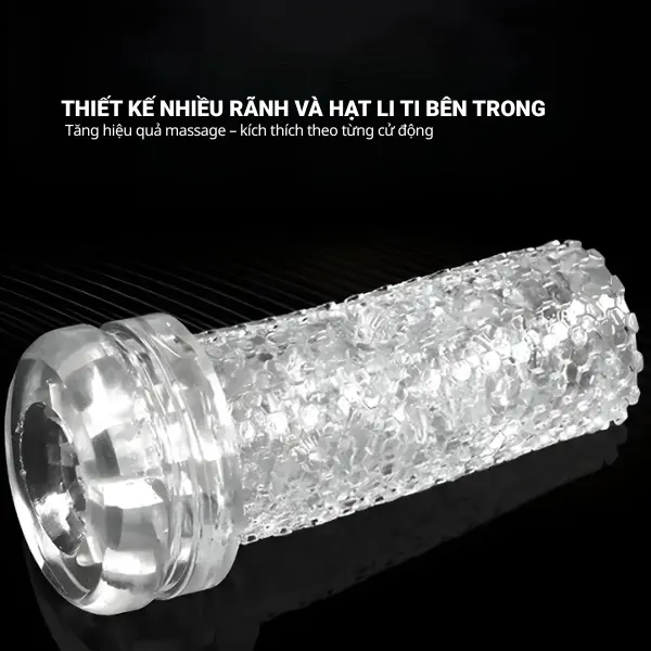 Đặc biệt, kết cấu đa tầng – đa điểm chạm như đang "ôm – siết – mút" từng cú đẩy. Nhờ ống khí chân không đáy cốc, bạn sẽ cảm nhận hiệu ứng mút khí – hút đẩy cực chân thật, mô phỏng cảm giác được quan hệ thực tế một cách trọn vẹn và mãnh liệt.