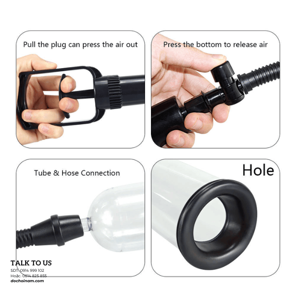 Dùng tay bóp bơm để tạo lực hút, giúp dương vật căng cứng và giãn nở.
